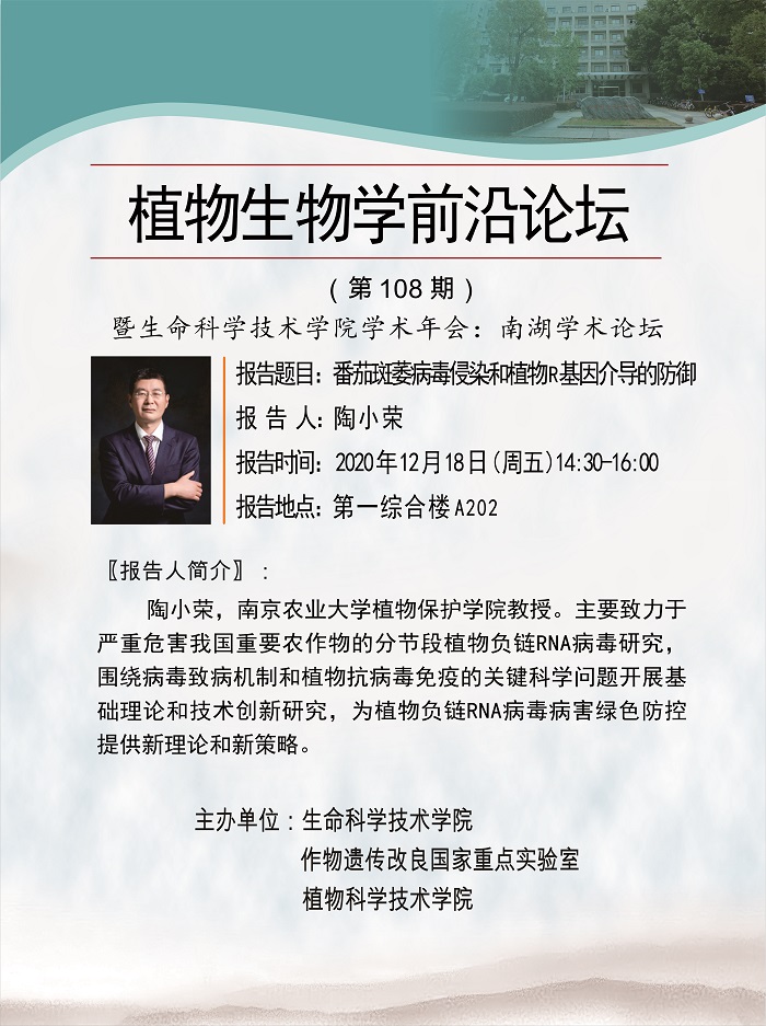 活动时间 报告题目 番茄斑萎病毒侵染和植物R基因介导的防御