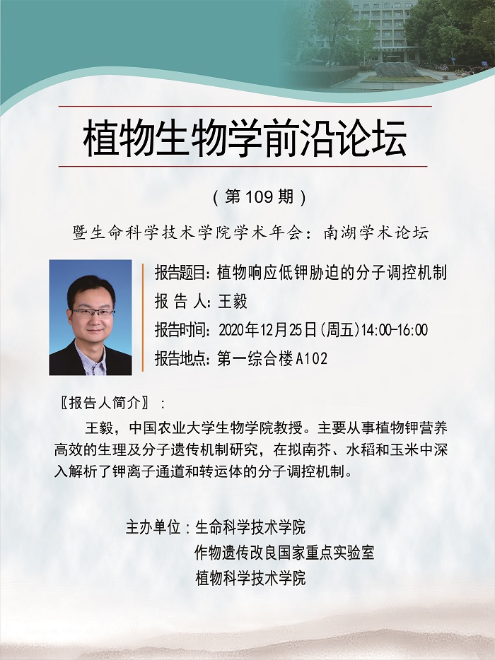 活动时间 报告题目 植物响应低钾胁迫的分子调控机制