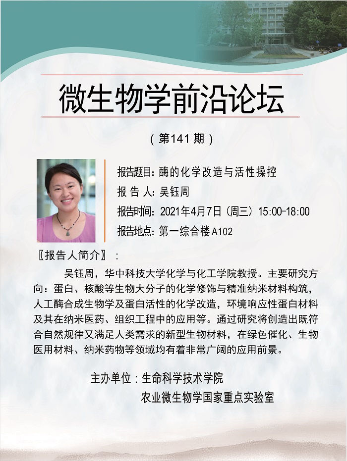 中国·湖北·武汉 南湖狮子山街一号430070 Tel:+86-27-87287308 E-mail:bio@mail.hzau.edu.cn
