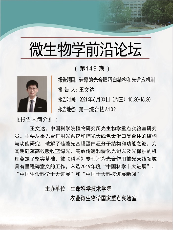 活动时间 报告题目 硅藻的光合膜蛋白结构和光适应机制