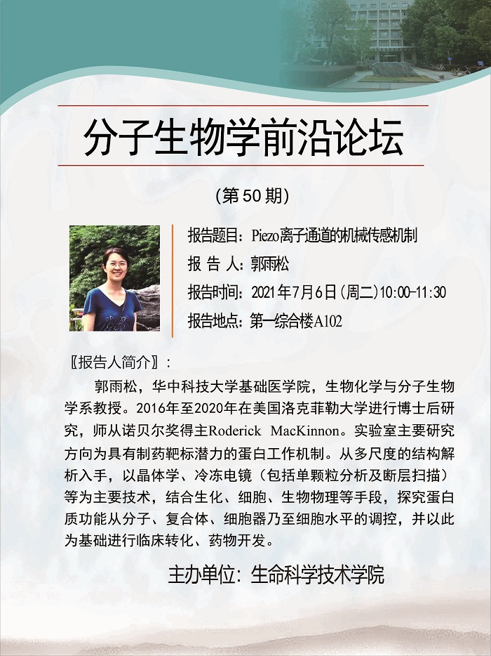 活动时间 报告题目 Piezo离子通道的机械传感机制