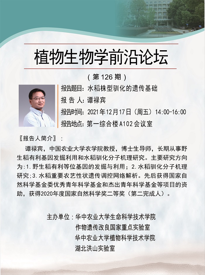 活动时间 报告题目 水稻株型驯化的遗传基础