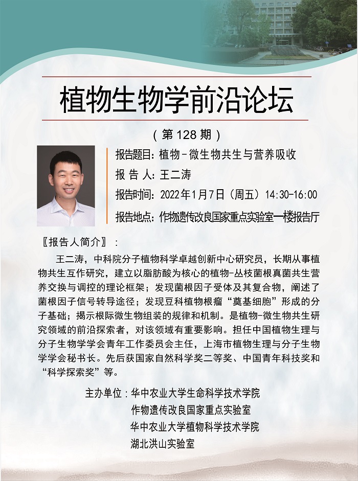 活动时间 报告题目 植物-微生物共生与营养吸收