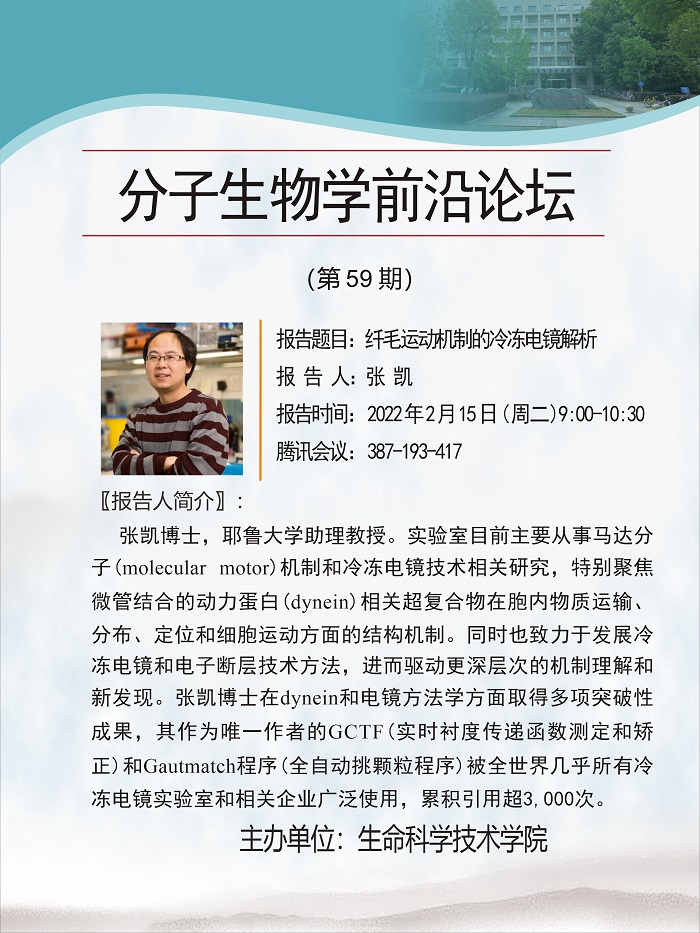 活动时间 报告题目 纤毛运动机制的冷冻电镜解析