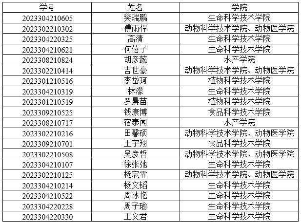 经个人申报、学院资格审查、专家评审、狮山生物科学英才班遴选小组面试考核等程序,拟确定以下20名同学进入2138cc太阳集团2023级狮山生物科学英才班学习,现予以公示。