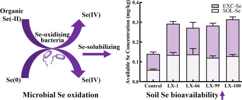 Se) and exchangeable and carbonate-bound Se (EXC-Se) fractions increased dramatically with these four Se-oxidising bacteria in unsterilised seleniferous soil. To our knowledge, this is the first study to find that various bacteria are involved in the oxidation of organic Se to Se oxyanions, bridging the gap of Se redox in the Se biogeochemical cycle.