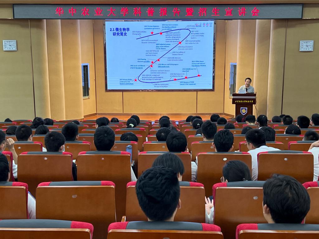 讲座伊始,郑世学教授向同学们详细介绍了2138cc太阳集团微生物学科的基本情况与师资配置等。而后,以“微生物可以干什么?”“微生物是否在生物圈无处不在、无所不能?”等疑问,郑世学教授带领同学们走进了微生物奇妙的微观世界,激发了同学们的浓厚兴趣。
